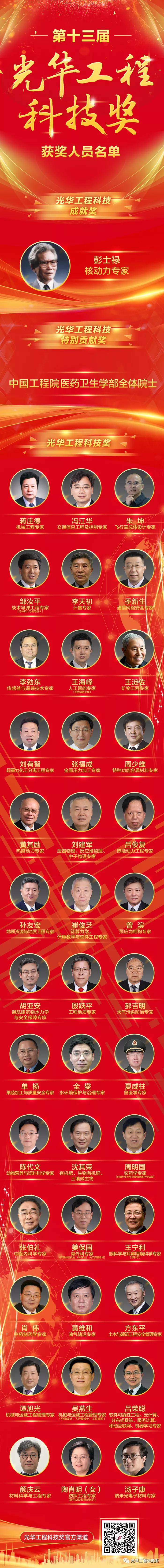 此次揭曉儀式正式公布了從296名候選人中評選出的第十三屆光華工程科技成就獎、光華工程科技特別貢獻(xiàn)獎以及光華工程科技獎的獲得者,最終僅有40位專家和1個團(tuán)體獲獎。本屆光華工程科技獎的獲獎科學(xué)家們,緊密圍繞國家重大戰(zhàn)略需求,瞄準(zhǔn)經(jīng)濟(jì)建設(shè)和事關(guān)國家安全的重大工程科技問題,緊貼新時代社會民生現(xiàn)實(shí)需求和軍民融合需求,加快自主創(chuàng)新成果轉(zhuǎn)化應(yīng)用,為創(chuàng)新驅(qū)動發(fā)展,建設(shè)科技強(qiáng)國,以及實(shí)現(xiàn)“兩個一百年”奮斗目標(biāo)和中國夢做出了重要貢獻(xiàn)。