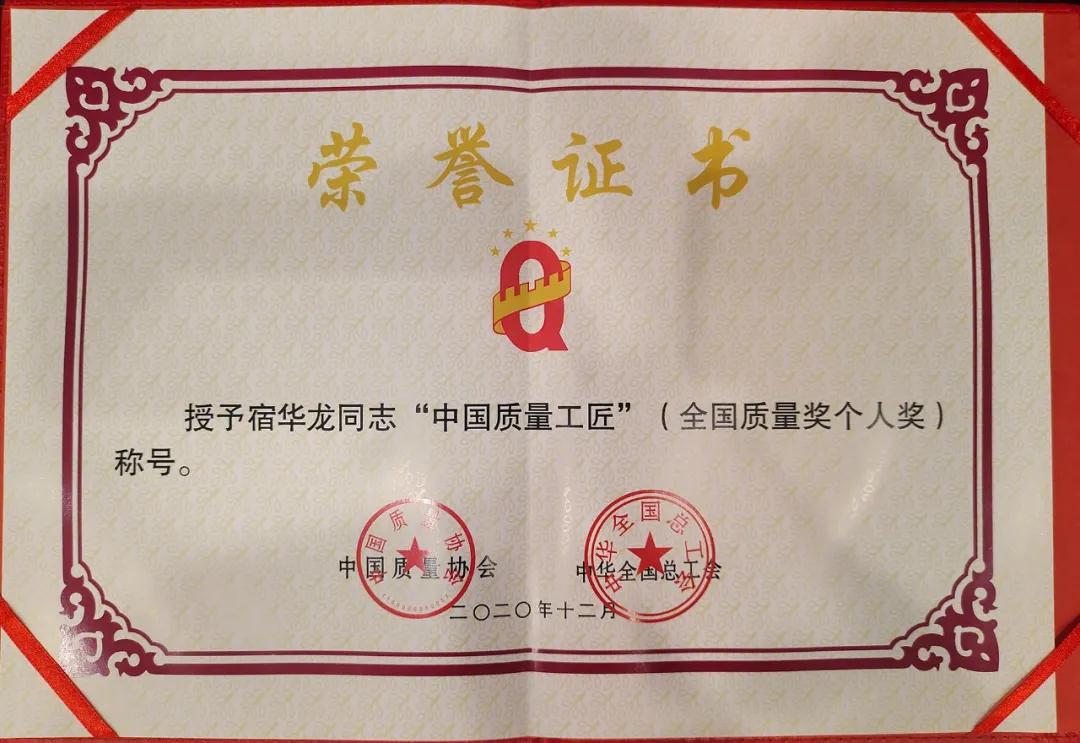兵器工業(yè)集團(tuán)宿華龍榮獲第十九屆全國(guó)質(zhì)量獎(jiǎng)“中國(guó)質(zhì)量工匠”稱號(hào)