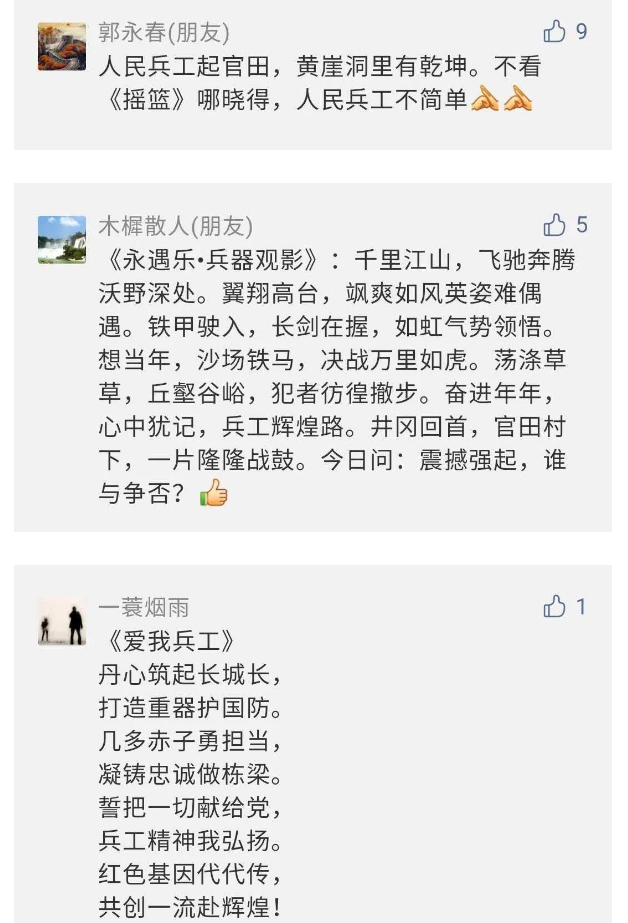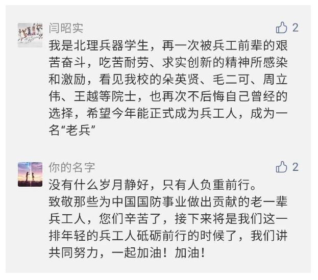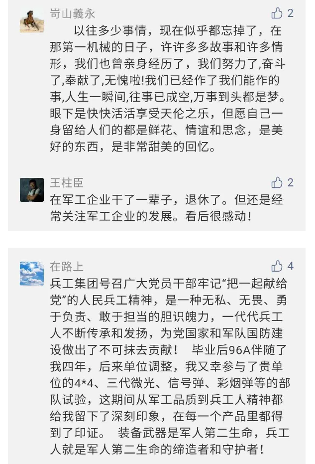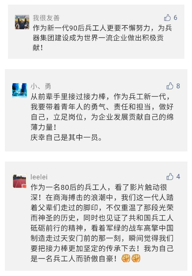 相比老一輩,年a輕的兵工人也表達(dá)了傳承紅色基因,弘揚(yáng)新時代“把一切獻(xiàn)給黨”的人民兵工精神的豪邁氣概......
