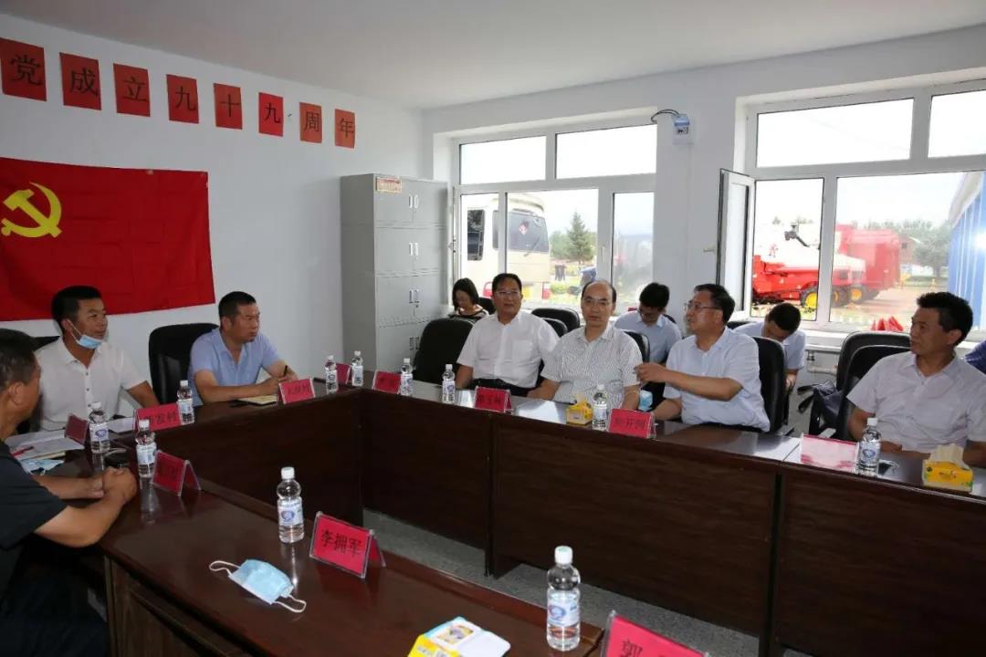 在興隆鄉(xiāng)新建村,焦開河聽取了大崗村、新發(fā)村和新建村關(guān)于農(nóng)機服務(wù)隊項目運行情況、收益和減貧的情況介紹,詳細(xì)了解了項目幫扶機制及未來發(fā)展想法。焦開河表示,農(nóng)機服務(wù)隊不僅實現(xiàn)了對貧困戶的幫扶,還可以通過創(chuàng)收、維護(hù)、解決就業(yè),帶動農(nóng)業(yè)機械化發(fā)展,是一個可持續(xù)項目。他強調(diào),下一步要整合好各村農(nóng)機服務(wù)隊,實現(xiàn)更大規(guī)模的連片種植。焦開河專門叮囑集團(tuán)公司派駐大崗村第一書記吳寶明,要充分發(fā)揮駐村第一書記作用,抓好黨建工作,積極培育致富帶頭人,為大崗村后續(xù)發(fā)展奠定好基礎(chǔ)。