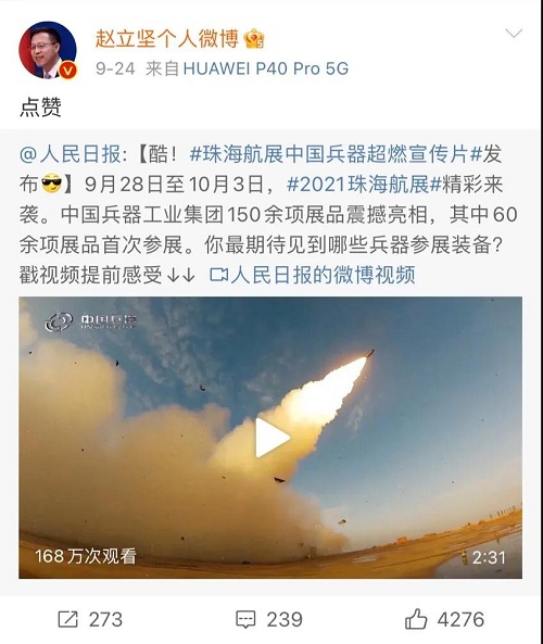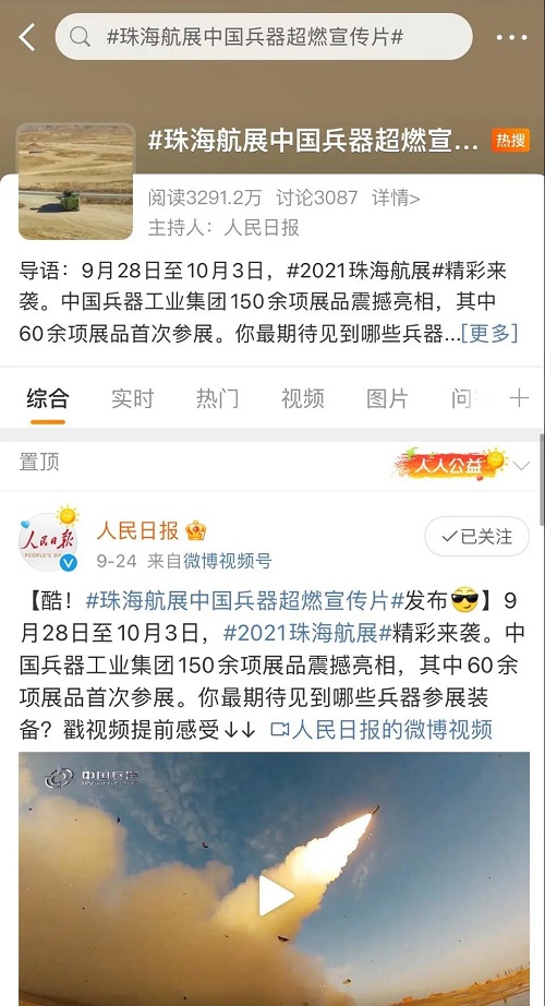 9月28日-10月3日,第十三屆中國國際航空航天博覽會在廣東珠海舉行,中國兵器工業(yè)集團有限公司作為主辦單位閃耀亮相,推出裝甲突擊、火力打擊、智能彈藥、防空反導、無人裝備、非傳統(tǒng)安全、軍工軍技合作等領域新產品及成體系成建制武器系統(tǒng)和解決方案,全方位展示我國陸軍外貿武器裝備的最高水平以及雄厚的科技創(chuàng)新、自主研發(fā)與先進制造能力,受到廣泛關注。 央視《新聞聯(lián)播》報道第十三屆中國航展,著重介紹了VT4主戰(zhàn)坦克,關注航展公眾日中國兵器館情況。9月28日下午央視《新聞直播間》航展特別節(jié)目《藍天盛會》邀請集團公司訪談嘉賓做客直播間對中國兵器館兵器工業(yè)集團展區(qū)等進行1小時直播;9月28日下午、10月2日下午分別對地面裝備動態(tài)表演進行兩場直播。央視《朝聞天下》、《新聞直播間》、《共同關注》、《天下財經》、《軍事報道》、《正午國防軍事》、《軍武零距離》等相繼推出集團公司參展裝備的報道。 人民日報、新華社、中國日報、共青團中央、國資小新、騰訊軍事、鳳凰軍事、新浪軍事等新媒體發(fā)布的集團公司航展宣傳片等視頻作品燃爆全網,閱讀量突破三千萬人次,得到外交部發(fā)言人趙立堅轉載點贊。集團公司微信、微博、抖音號、微信視頻號等新媒體宣傳片播放閱讀量超過400萬人次。同時,央視新聞、新華社、中國之聲、央視軍事、央視新媒體、解放軍報、共青團中央、國資小新、環(huán)球時報等多家媒體對集團公司靜、動態(tài)展區(qū)進行現(xiàn)場直播,在電視端、客戶端、微信視頻號、微博、B站、快手、抖音等平臺受到高度關注。著名軍事專家杜文龍、央視主持人顧國寧、央廣中國之聲主持人王藝等直播兵器館、動態(tài)表演區(qū)裝備。 《參考消息》、新華網、央廣網、中國日報、科技日報、解放軍報、人民網、中國新聞網、中國青年網、中國網、中工網、央視網、環(huán)球網、騰訊網、新浪網、鳳凰網、搜狐網、網易網、今日頭條等中央主流媒體和知名網絡媒體以及南方日報、廣東電視臺、北京電視臺、新京報、珠海傳媒集團、深圳衛(wèi)視等省市媒體對集團公司參展情況進行了圖片、文字、視頻報道。 航展期間,備受關注的中國兵器館,參觀的觀眾絡繹不絕。 |