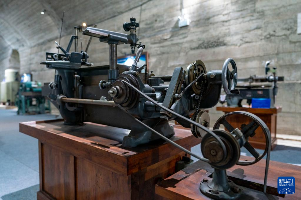 這是5月16日拍攝的中國(guó)光學(xué)歷史博物館內(nèi)收藏的螺紋車床。