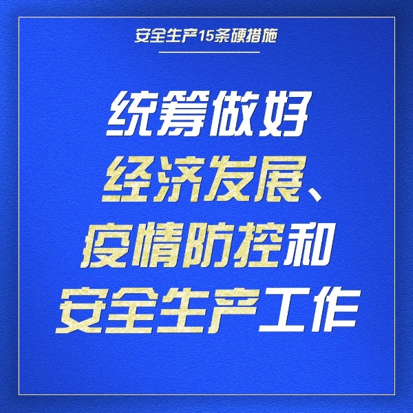 為認(rèn)真貫徹落實習(xí)近平總書記關(guān)于安全生產(chǎn)重要指示精神和黨中央、國務(wù)院決策部署,近日,國務(wù)院安委會梳理相關(guān)法律法規(guī)已有規(guī)定、以往管用舉措和近年來針對新情況采取的有效措施,制定了進一步強化安全生產(chǎn)責(zé)任落實、堅決防范遏制重特大事故的十五條硬措施,部署發(fā)動各方面力量全力抓好安全防范工作,為黨的二十大勝利召開創(chuàng)造良好安全環(huán)境。