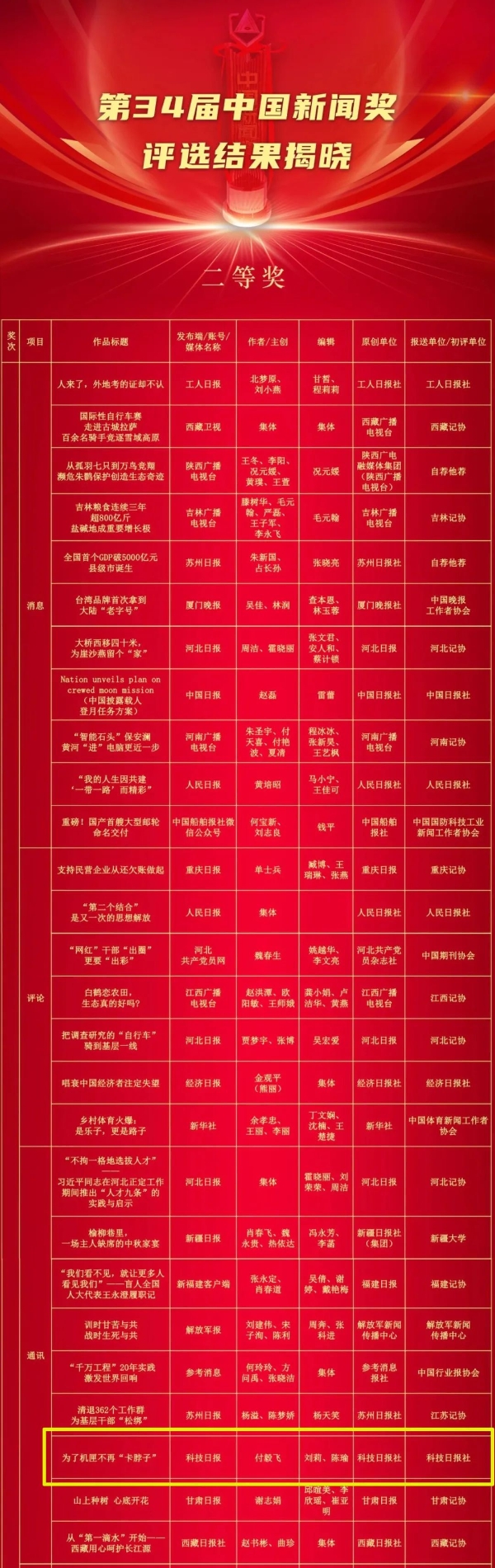 報道兵器工業(yè)“大國重器”的這篇通訊作品,榮獲第34屆中國新聞獎二等獎